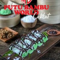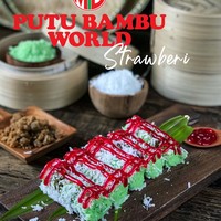 Kuih putu bambu yang disalut dengan perasa strawberi